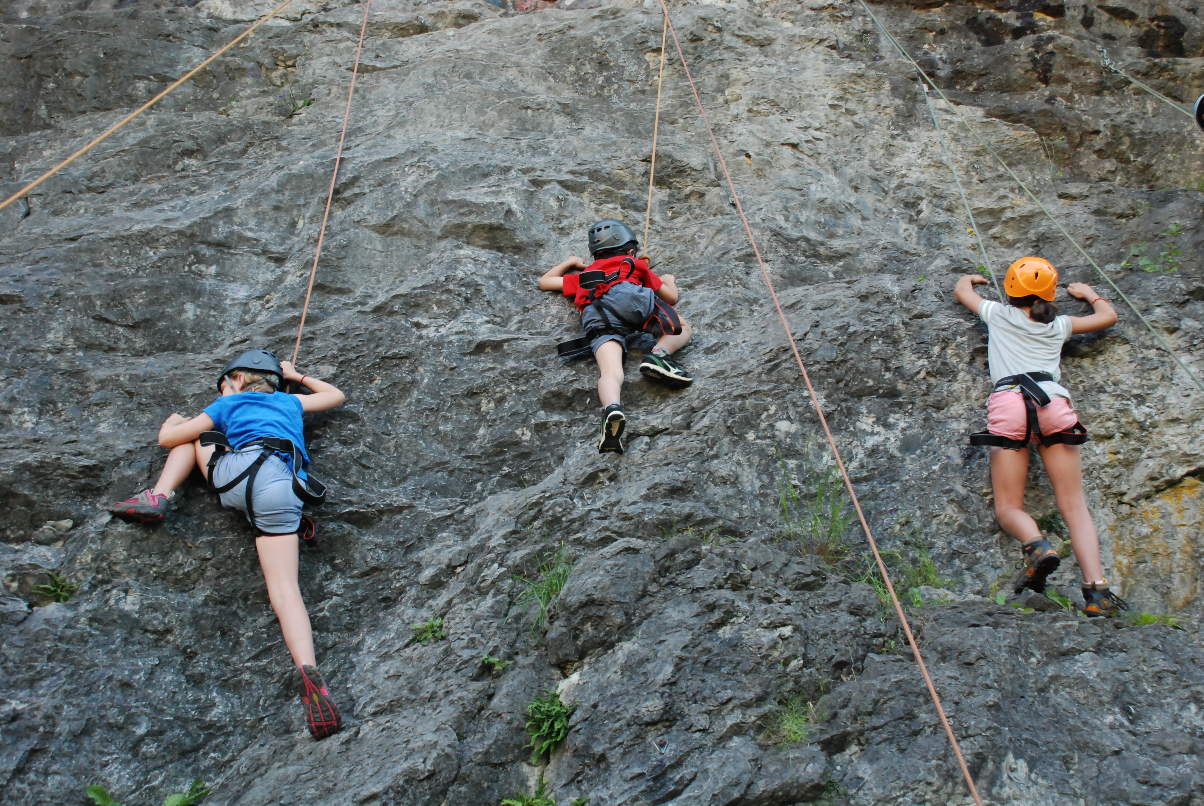 Red Group woke up this morning at 1500m in the Alps to a beautiful morning at camping. After a hearty breakfast, the campers set off back down the mountain under the sunshine. After a quick rest and shower, Red Group went out on their excursion of the day which was outdoors rock climbing. The campers were all prepped with a climbing harness and helmet as well as climbing buddies. Though some parts were tough, Red Group all managed to get to the top of the climb where they could wave back down to their fellow campers and lovely group leaders. Back at camp, 4th of July celebrations were in full swing and the campers enjoyed burgers and brownies in their decorated American style canteen. Dinner was followed by an evening of American sports such as baseball and dodge-ball which Red Group all thoroughly enjoyed.